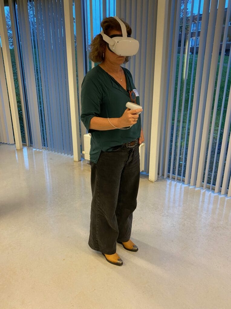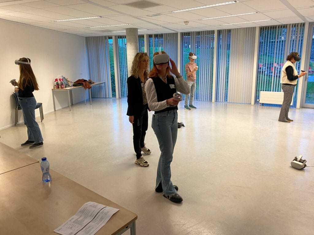 Trainster Iris Hudepohl legde uit dat er talloze simulatiemodules zijn: van ervaren hoe discriminatie werkt tot huiselijk geweld. Ook voor dementie ontdekten de aanwezigen hoe de VR-bril uitstekende leermogelijkheden biedt.